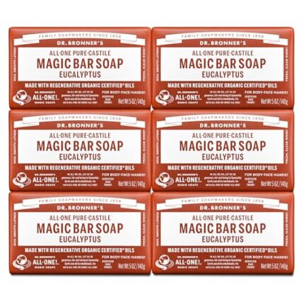 Dr. Bronner’s Pure-Castile Magic Soap Bars (Eucalyptus, 5 oz, 6-Pack)- Made with Regenerative Organic Certified Oils for Face, Body & Hair – Gentle, Biodegradable, Vegan- Bar Soaps for Men & Women