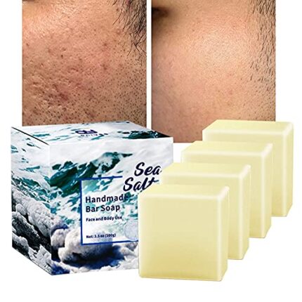 4 PC- ONIYEA Sea Salt Handmade Bar Soap 3.5 Oz Each, Natural Goat’s Milk, All Skin Types, Exfoliating Acne Deeply Clean Problem Skin, Body/Face/Hand Wash Skincare, Women Men Birthday Mother Valentine