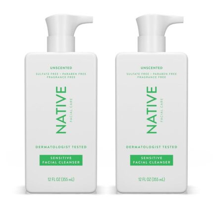 Native Sensitive Face Wash, Spa Day Every Day Facial Cleanser (2 Pack) | Daily Face Cleaner with Aloe and Vitamin B3, Unscented, 12 fl oz