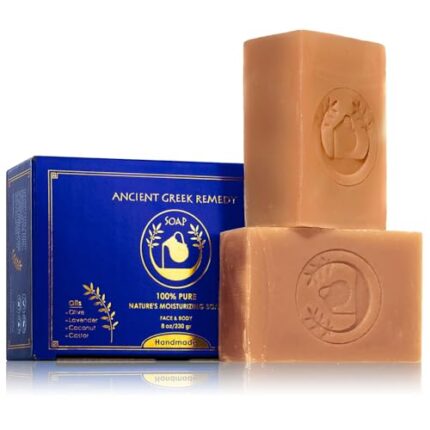 Ancient Greek Remedy Organic Face and Body Soap Bars for Dry, Normal, and Sensitive Skin. Gentle Wash Treatment for Women and Men With soap Holder (2 pack)
