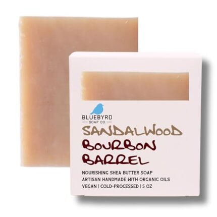 BLUEBYRD Soap Co. Sandalwood Bourbon Soap Bar | Moisturizing Soap Wash for Face, Body, and Hands | Vegan and Paraben Free | Sandalwood Bar Soap Moisturizing Shea Butter & Olive Oil (BOURBON)