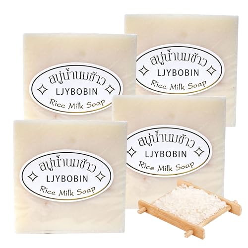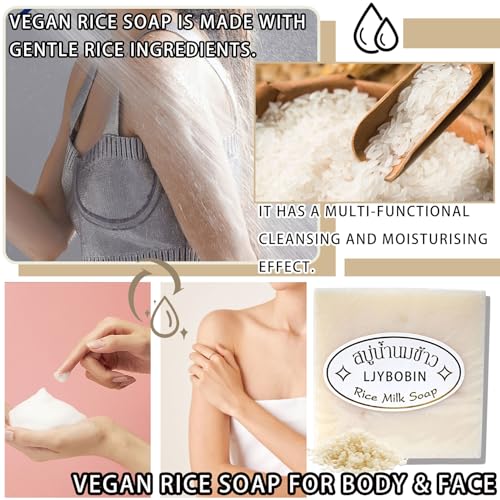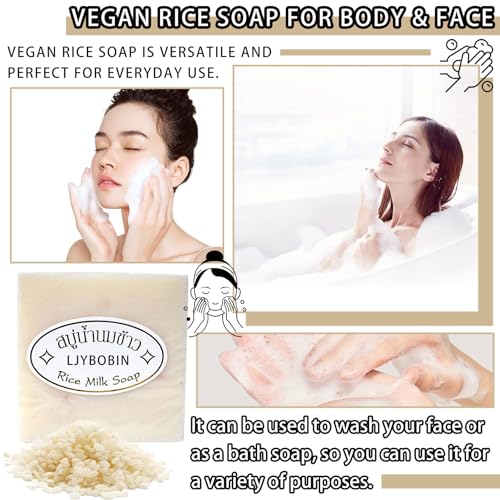 4PCS Vegan Rice Soap for Body & Face,Gentle Long-lasting Moisturizing Rice Milk Soap for All Skin Type,Deep Cleaning Rice Handmade Soap Bar for Men & Women
