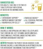 Ingredients Per serving: 1000mg organic chlorella and organic spirulina.