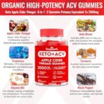 Organic ACV Gummies with Mother: Each serving delivers 2000 mg of apple cider vinegar, 200 billion CFU of probiotics, B12, keto support blend, turmeric & black pepper. Keto ACV Gummies deliver key nutrients for digestion, metabolism, and overall health