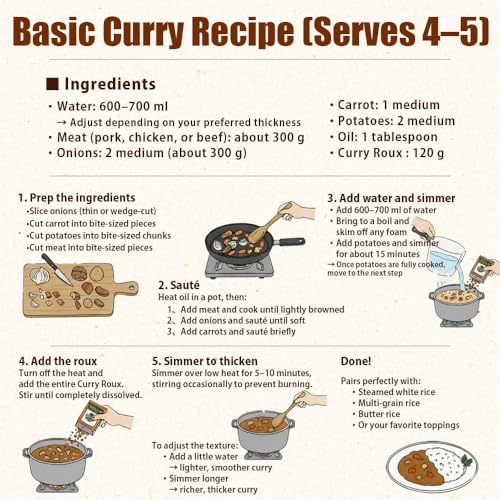 QUICK & EFFORTLESS TO MAKE: Forget cutting up messy roux blocks! Our fine powder dissolves instantly into hot water, creating a smooth, lump-free curry sauce every time. Simply sauté your favorite meats or vegetables, add water and our curry mix, and simmer. A delicious, restaurant-quality meal is ready in under 30 minutes!
