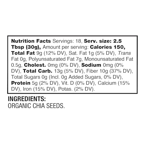 WITH OMEGA-3 & MORE: Chia seeds are loaded with 5350mg of omega-3, 10g of fiber, which is 7% of the DV recommended amount for fiber. In the ancient Mayan language, the word “chia” meant strength, so the name speaks for itself. Our Organic Chia Seeds can also be used as an egg replacement when cooking or baking. Simply mix 1 tbs. of chia seeds with 3 tbs. of water, let sit for 5 minutes, and consume or bake immediately