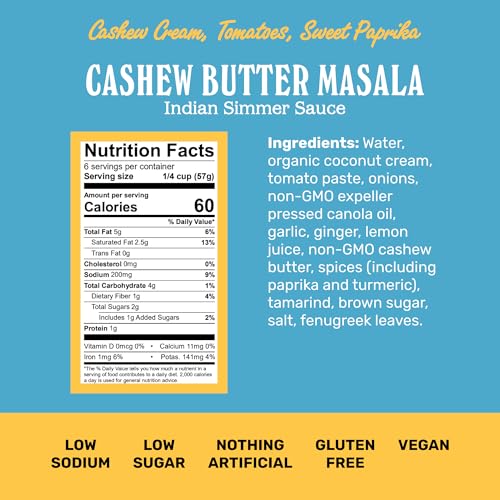 WHOLESOME INGREDIENTS – Our Cashew Butter Masala is vegan, low sugar, low sodium, and created with no artificial ingredients. Brooklyn Delhi uses no starches, gums or other stabilizers, just wholesome ingredients.