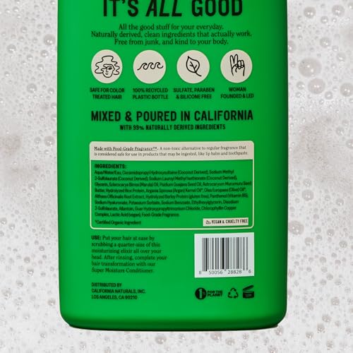 99%+ NATURALLY DERIVED INGREDIENTS: Our Super Moisture Shampoo is made using all the good stuff, and none of the bad like parabens, sulphates, phthlates or silicones.