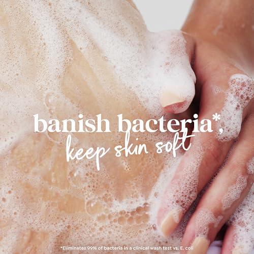 Get out of here! Banish bacteria* from your scared skingdom with our Dove Antibacterial Body Wash. Different from others, this hydrating gel formula gently yet effectively cleanses without drying out the skin, eliminates 99% of bacteria in one wash, and moisturizes 100% of your skin. We like those numbers. Our signature Moisture Renew Blend renews and locks in skin’s moisture and locks out harmful bacteria, leaving you with long-lasting nourishment and soft skin. Win-Win. And did we mention how it smells? The cleansing scent of sun-drenched citrus, delicate dewy florals and soft creamy woods will transport you to a seaside Sicilian garden. So basically, the formula is working overtime while your senses are Euro trippin’. To use this hydrating gel formula, squeeze into palms or loofah, work into a lather, spread over skin, rinse with warm water and step out of the shower feeling squeaky clean, and super soft. Who else would you trust, but the dermatologist-recommended brand (us!) to deliver a long-lasting, moisturizing body wash? Our Antibacterial Body Wash is vegan and Dove is PETA approved, meaning we do not test on animals anywhere in the world. Plus, it’s sulfate-free, paraben-free, and packaged in 100% recycled bottles. (*eliminates 99% of bacteria in a clinical wash test vs. E.coli)