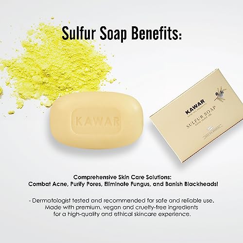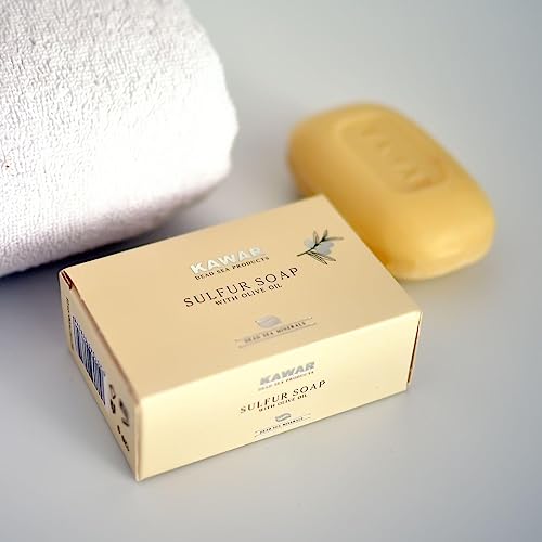 KAWAR Dead Sea Sulfur Soap with Olive Oil, Relief Skin Conditions Such as Acne, Psoriasis, Eczema & Blackheads, for Oily to Normal Skin, Vegan Soap Bar for Men & Women, 4.2 oz