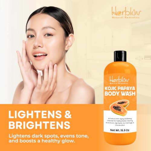 Kojic Acid Soap for Hyperpigmentation – Skin Brightening Kojic Papaya Body Wash – Dark Spot Soap Reduces Acne, Scars, and Evens Skin Tone – Turmeric Body Wash for Brighter Glowing Face