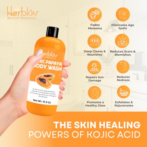 PURE KOJIC ACID BODYWASH: This all-natural ingredient is sourced from fermented rice, commonly used in Japanese sake. Kojic acid soap is a skincare extract known to assist with issues like melasma, age spots, sun damage, and discoloration.