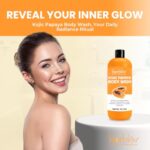 PAPAYA BODY WASH FOR BODY: This Kojic Papaya soap is designed to cleanse and brighten skin on the body, neck, inner thighs, underarms, and more. Safe and gentle for both men and women. Suitable for various areas like bikini, hands, armpits, breasts, and the body.