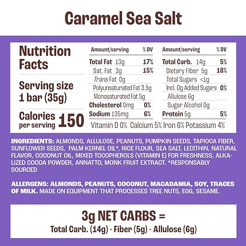 Lifestyle-Friendly Snacks: Made with you in mind, our sweet and salty nut bars are Gluten Free, Plant Based, Keto Certified and Low Net Carb, with 150 calories and 3g net carbs per serving.