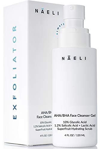 EXFOLIATING FACE WASH – Anti Aging face exfoliator gel that contains 10% Glycolic acid with Lactic Acid. Enhanced with alpha-hydroxy acids (AHA) & beta-hydroxy acid (BHA). This salicylic acid cleanser is able to deeply cleanse, penetrate, unclog & minimize pores of irritants and bacteria. Brightens and helps reduce acne, wrinkles and fine lines.
