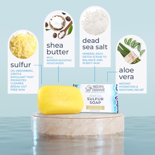 Natural Elephant Dead Sea Sulfur Soap 4.4 oz with Dead Sea Salt, Aloe Vera, Sulphur Face and Body Cleanser for All Skin Types (4 Pack (17.6 oz Total))