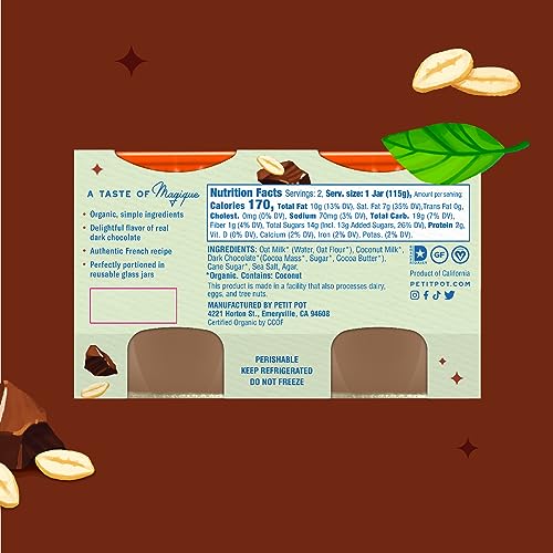 Say bonjour to the latest plant-based offering from Petit Pot! Made with organic oat milk, coconut milk and dark chocolate, this indulgent French dessert will make you come back for more. Keep refrigerated. Organic and Kosher certified.