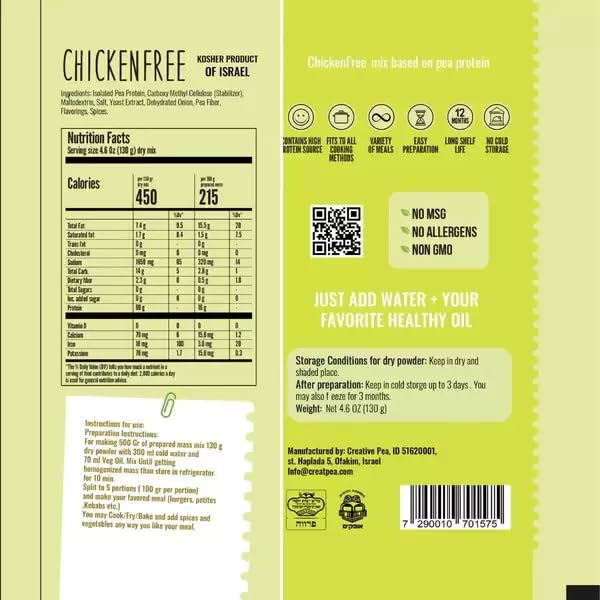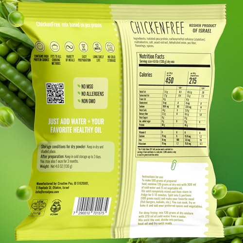 🌱 Healthy Chicken Alternative: Enjoy our high-protein vegan chicken crafted from nutrient-rich pea protein and textured vegetable protein (TVP). It’s gluten-free, keto-friendly, soy-free, and nutritious. Perfect for making tasty veggie chicken tenders, savory meatless chicken crumbles, protein-packed vegan chicken salads, wraps, or healthy vegan meals anytime!