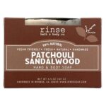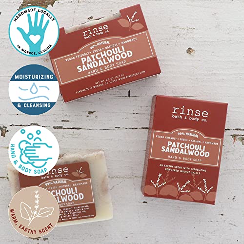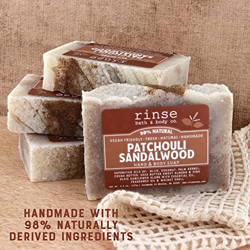 Rinse Bath & Body Patchouli and Sandalwood Soap – Handmade Castile Patchouli Soap w/Essential Oils | Moisturizing & Cleansing | Shea & Cocoa Butter with Sweet Almond Oil | Natural | Vegan | 4.25oz