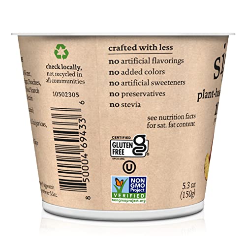 siggi’s® Peach Plant-Based Coconut Blend is an ode to deeply rooted Scandinavian dairy tradition that has been a part of Icelandic culture for centuries. siggi’s® founder wasn’t thrilled with the overly sweet and artificial taste of other US yogurt brands, inspiring him to create thoughtfully simple yogurt sourced from family farms. Our plant-based blend has 3x more protein & 40% less sugar than leading yogurt alternatives, made with a not-too-sweet coconut concoction. On average, siggi’s® plant-based flavored products have 1.6g sugar per oz., 1.9g protein per oz., compared to the leading flavored yogurt alternative’s average of 2.9g sugar per oz., and 0.6g protein per oz. Our plant-based blend contains simple ingredients without all those dreadful artificial sweeteners.