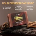 【Multi-Purpose Mens Sandalwood Soap Bar】 Our soap bar can be used as bath soap and facial cleansing soap, with one soap for multiple purposes, providing you with convenience. It contains sandalwood, avocado oil, and olive oil, which can moisturize the skin, exfoliate, hydrate, improve dryness, reduce dark spots, and make your skin smoother and softer.