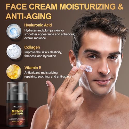 Men’s Face Moisturizer Cream – Anti Aging & Wrinkle – Made in USA – Collagen, Hyaluronic Acid, Vitamins E & A, Avocado Oil – After Shave Lotion – Age Facial Skin Care, Day & Night Moisturizing, 2 oz