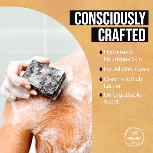 Home Vegan Toiletries SoapFactory Organic Black Soap Bar with Activated Charcoal for Men and Women,100% Natural Facial Cleanser, Face and Body, Vegan, Handmade, 3.88 ounce (Pack of 3)