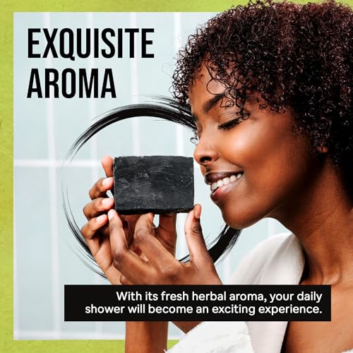 Black soap bar with Charcoal: Activated charcoal absorbs toxins and environmental pollutants from the body and leaves the skin feeling clean and refreshed, without drying it out