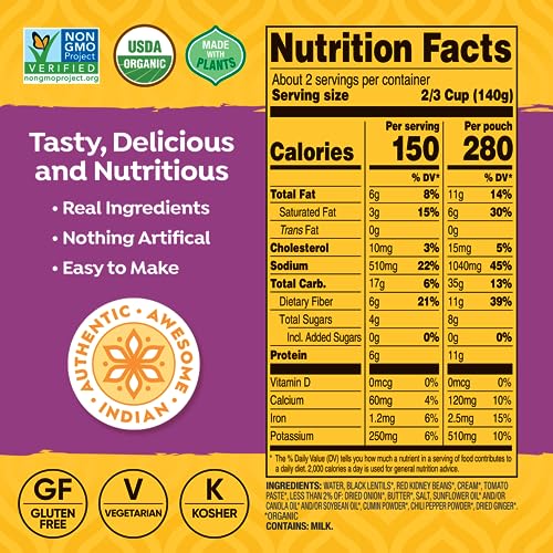 Organic Indian Madras Lentils: Soft lentils and red kidney beans slow-cooked in a creamy tomato sauce with onions and a variety of spices; Try as a hearty soup, lentil and bean chili or over a bed of rice