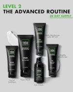 Enhance Your Handsome: Products in the Tiege Hanley Advanced Routine for Men work together to help smooth, hydrate, and protect your skin while fighting off crow’s feet and dark circles. Includes face wash (2.5oz), exfoliating scrub (0.75oz), AM facial moisturizer with SPF20 (0.75oz), PM moisturizer (0.75oz), eye serum (0.5oz), and simplified usage guide. This Level 2 set provides a 30-day supply that’s great as a starter pack for you or a gift for someone else.